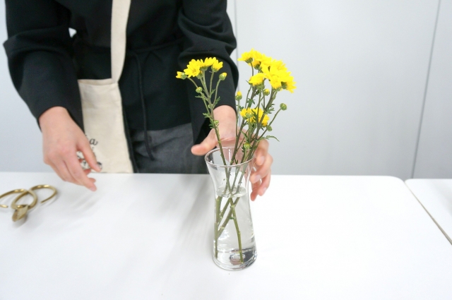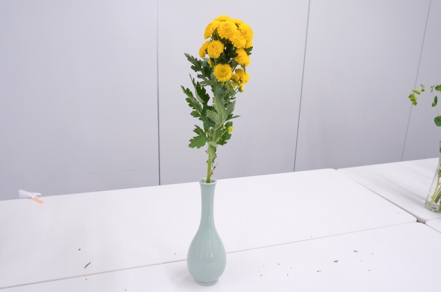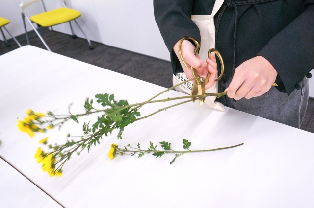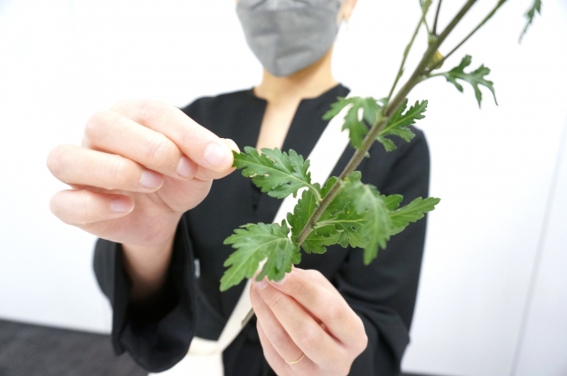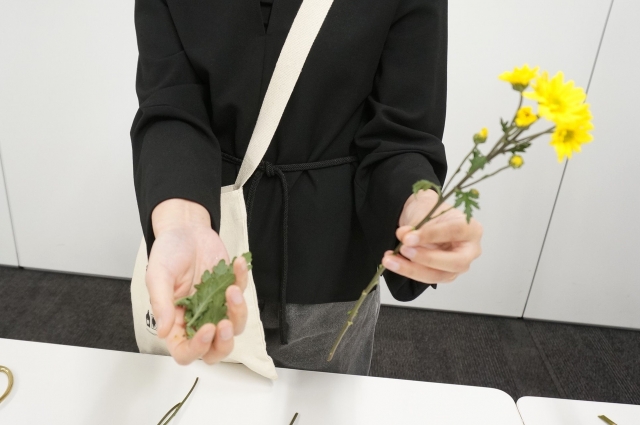 JUNERAY:実は菊は花よりも葉が先に傷んでしまうんです。葉は花のすぐ下にあるもの以外はもいで、花に栄養が行くようにしつつ、菊っぽさを薄めます。