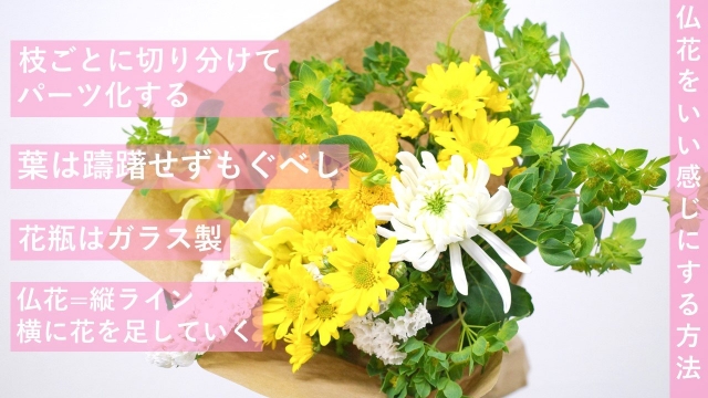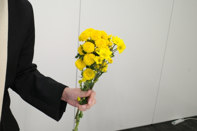 仏花が仏花に見える理由がわかったところで、いよいよ花束を作ってみよう。