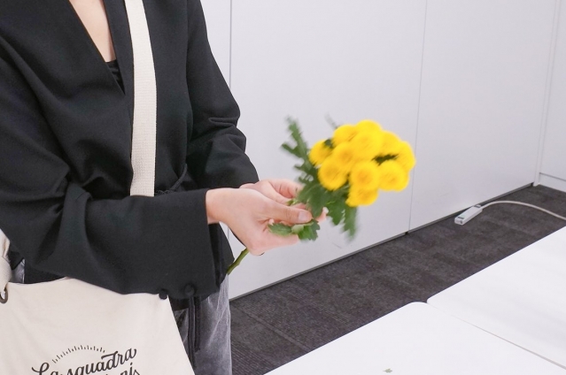 JUNERAY:白い菊は花言葉がいいらしくて、結婚式のブーケにも使われるんですよ。