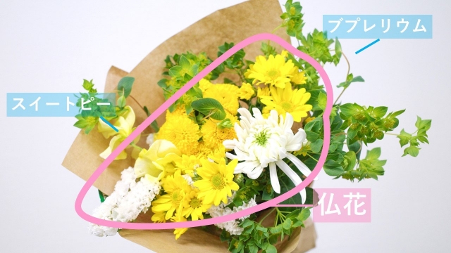 それから重要なのが、仏花の印象を変えるアレンジ要員。