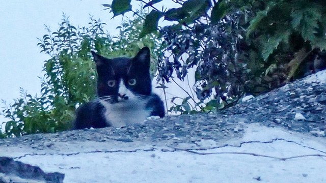 体が白くで顔が黒いネコを見つけると、たいてい鼻柱から額にかけて白くなっており、この真ん中のところ黒くならんもんかねと悶々とするのだが、板橋区で見つけたこの方のフェイスはいい感じで黒が優勢だった。