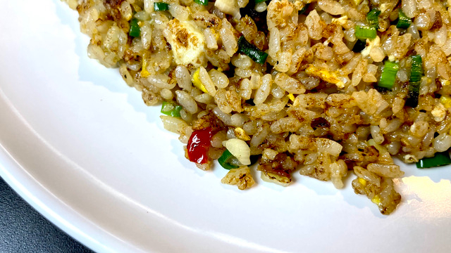 ガツンとくるタイプのチャーハンだ。お米の粒立ちを感じながらも、しっとりしている。