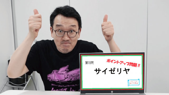 さあ、5問目は難しいのでポイントアップ問題です。正解すれば一挙に3ポイント獲得。こちらの店名、綴らっしゃい!