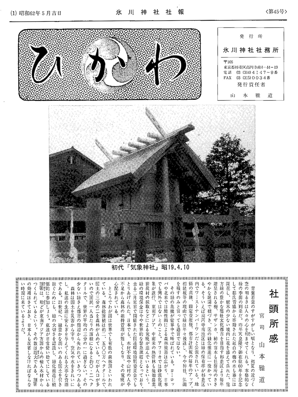 気象神社は日本にひとつ、高円寺氷川神社の境内にある。前身は昭和19年に大日本帝国陸軍の陸軍気象部(高円寺北4丁目)構内に造営された社。当時の気象観測員が気象予報の的中を祈願したそうだ。