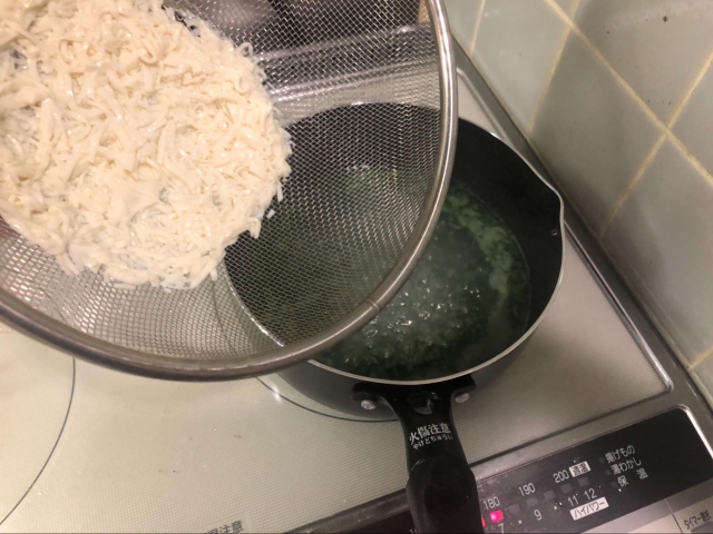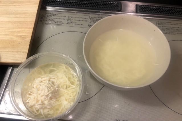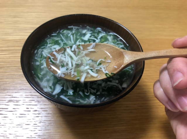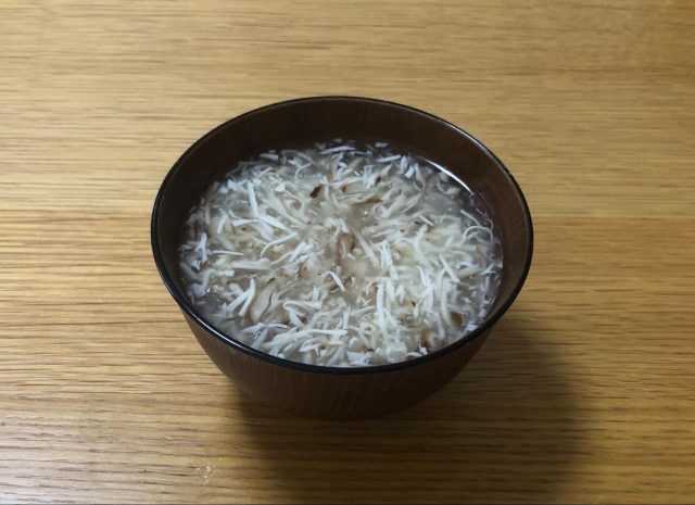 しいたけの細切りを入れてスープに仕立ててできあがったのが、