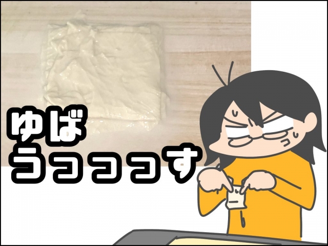 私が豆腐では成しえない薄さにびっくり。しかも、つまんで持ち上げてもやぶれません。