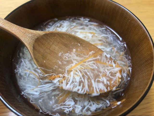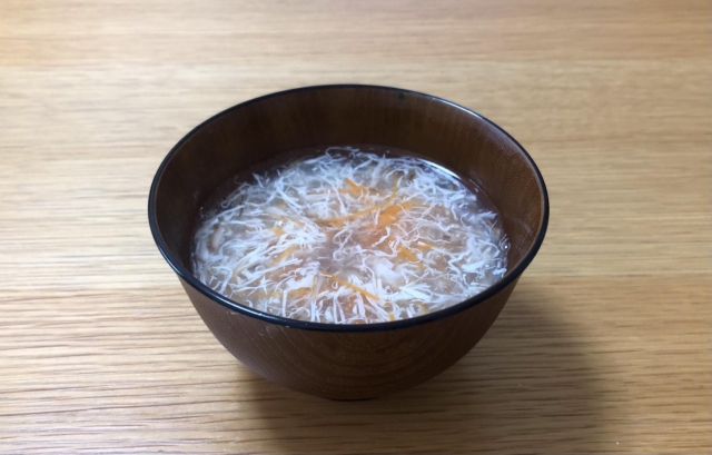今回はしいたけとにんじんを茹で、スープに湯葉を入れ、