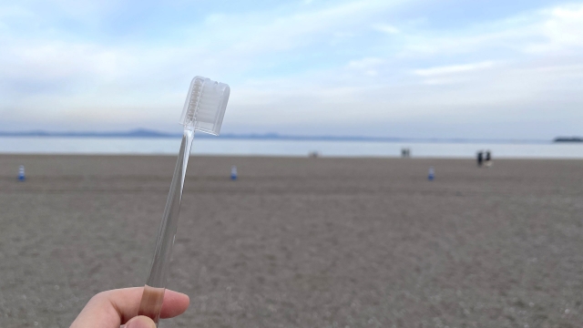そんなことを考えながら歯ブラシセットを買い、海を背景にして1枚写真を撮ってみた。