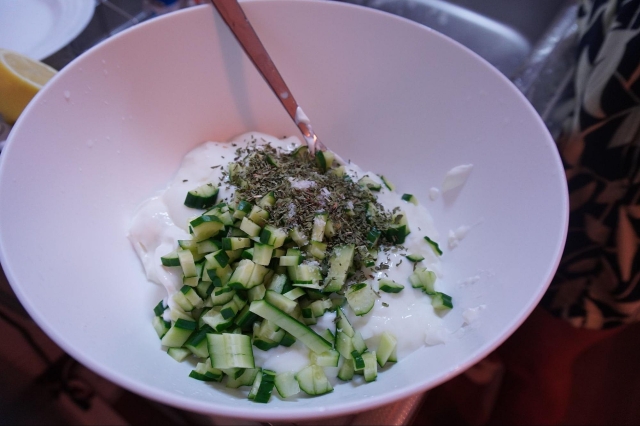 トルコ料理ではヨーグルトが重要な役割を果たします。買い出し中も、アディルがヨーグルトコーナーで「ギリシアヨーグルトはないのかな」と熱心に探していました。