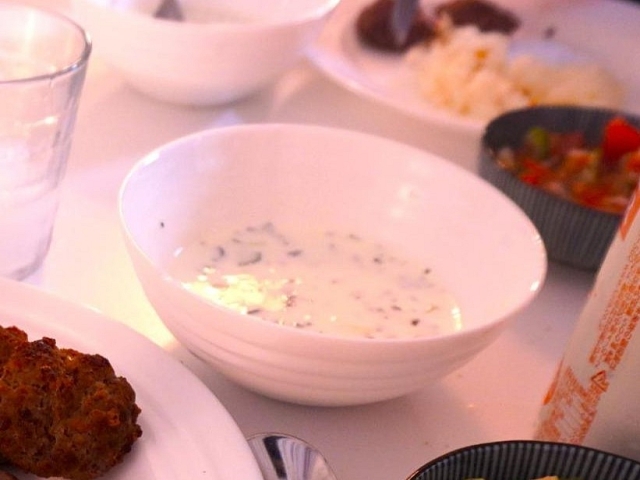その勢いのまま、次は「Cacık」(ジュジャック)へ。こちらは前菜として食べる、ヨーグルトときゅうりのサラダです。スープのように飲めるのが特徴だとか。