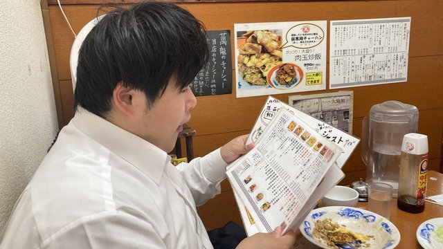 店内に入り、どのチャーハンを食べるかの話になった。しかし、部長である筆者が「今週の金曜日に健康診断があって、炭水化物をあまり食べないようにしているんですよ」と部員たちに伝える。(この日は火曜日)