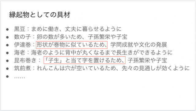 やはりおせちの考え方を流用するとだいたいの食べ物は縁起物であった。今日はそういうことでよろしくお願いします。