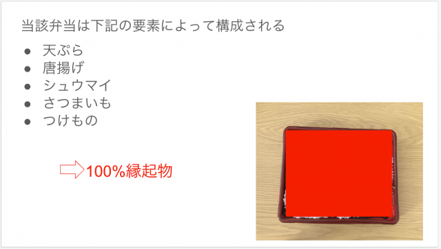 よかった。これにて幕の内弁当は完全に縁起物であり、おせちと同様であるということが証明された。