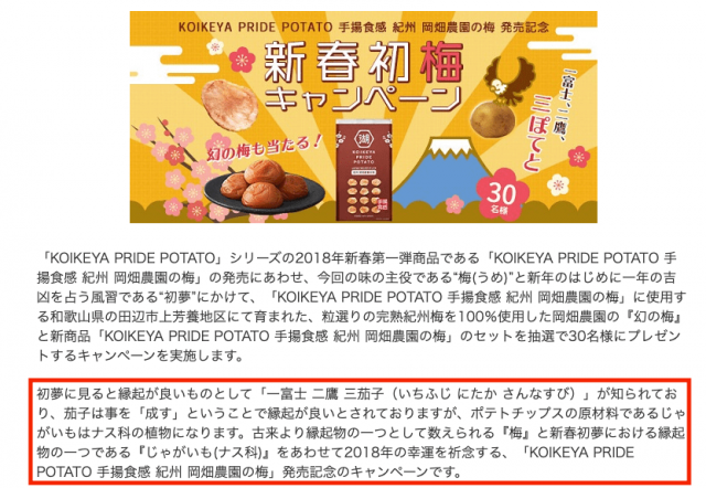 よかった。と言いたいところだが、後でそのプレスリリースを見直したところ「ナス科だからじゃがいもも縁起がいい」とは書かれていなかった。すいませんでした。