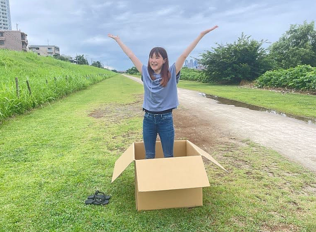 「怖いですよ」と忠告されながらダンボールに入るまいしろ。