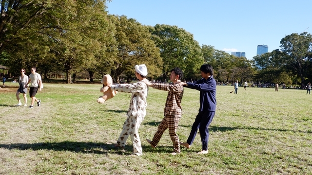 なお念のために書いておくと、公園での撮影許可はとっている。パジャマではしゃぐことは、誰にもとがめられない。