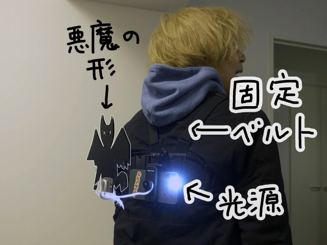 思った以上に悪魔が実現できてしまった。デジカメでシャッタースピードを長くする影と顔が両方映った。