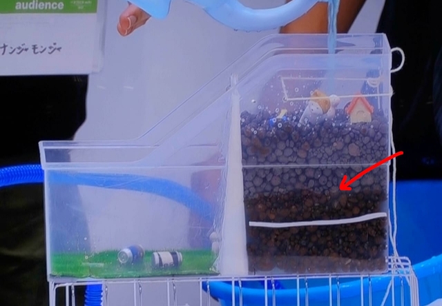 この場合は、右側に降った雨が、水抜き穴から左側に抜けていく。どれだけ水を注いでも水位は上がらず、擁壁は倒れない。