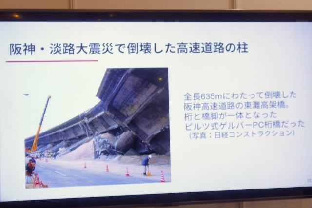 実際に、阪神淡路大震災で倒壊してしまった高速道路の柱ではこのようなことが起きたという。