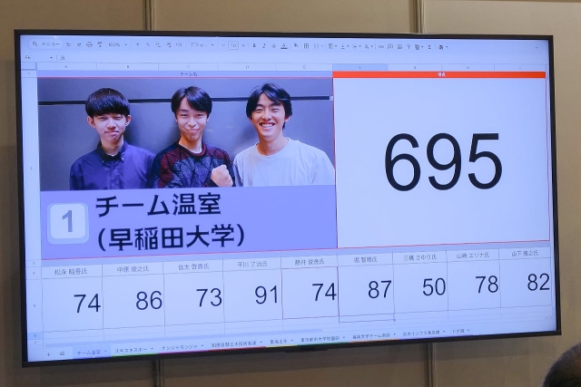 最終的な得点は695点だった。審査員は9人なので、900点満点だ。平均得点は77点。これからはこれが基準になる。