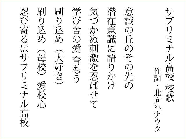 続いてハナウタさん作のサブリミナル校歌だ。改めて歌詞を見ていこう。