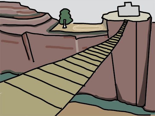 ・学校は吊り橋の上、いや、吊り橋の先ということにする