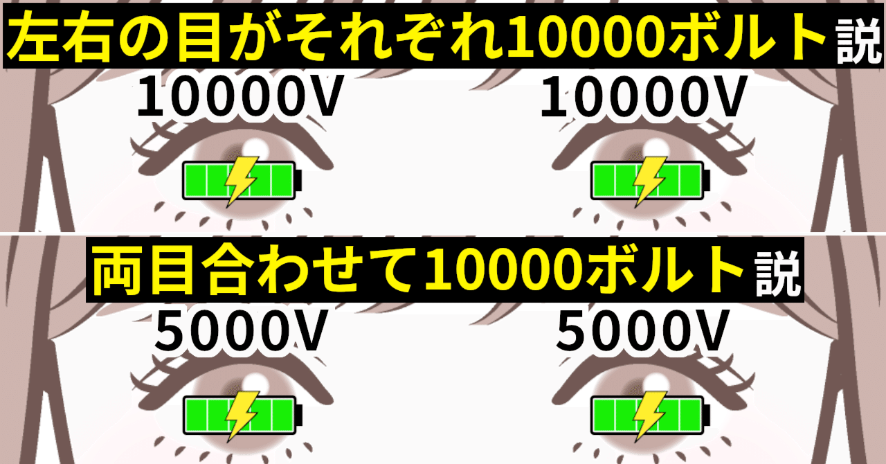 堀内孝雄の『君のひとみは10000ボルト』という歌に出てくる「君」の瞳は、「左右どちらも10000ボルト」なのか「両目あわせて10000ボルト」なのか考えてみたというものです。