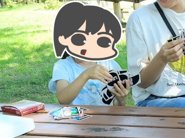 出会ったときは緊張してカチコチでしたが、ドロー4が大量に出回るゲームフィールドに大興奮して、めちゃくちゃはじける笑顔です。