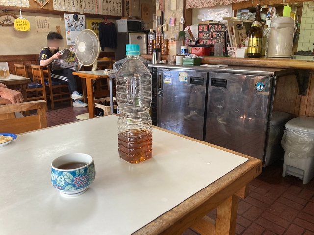 壁に貼られた短冊メニューを眺め、650円の「中華そば」を注文する。700円のカレーも美味しそうだなー!目の前の常連さんは焼酎を飲んでいて、他のテーブルでビールを飲んでいる方もいる。私もお酒を飲もうかなと思うが、少し迷っていた。というのも、ヨッピーさんがすすめてくれたスポットの中に、駅前の観光案内所で電動自転車を借りたら行ける距離にあるところが結構あって、それもいいなと思っていたのだ。