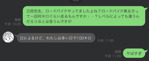 ちなみにロードバイク乗る方って一回でどのぐらい走るのかな?と思って先輩に聞いてみたところ