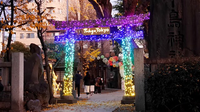 このライトアップは、東武鉄道が牛嶋神社と墨田区と連携し、浅草から東京スカイツリータウン(押上)までの「あさおしエリア(浅草~押上)」にイルミネーションを設置したもの。