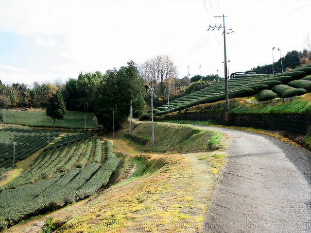 たどり着いたのは、一面に茶畑やら棚田やらが広がる場所だった。これまで鬱蒼とした暗い杉林の山道を歩いてきただけに、いきなり現れたこの一帯の広さと明るさには驚いた。