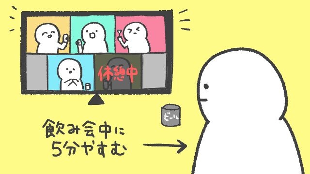 リモート飲み会だと一時退出も簡単だったので、いまが一番「休憩あり飲み会」に適した時期かもしれません。