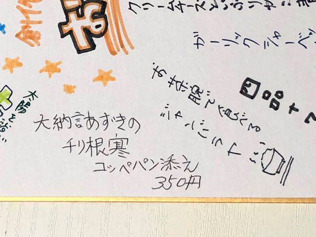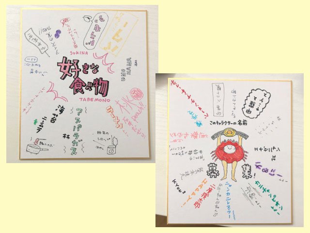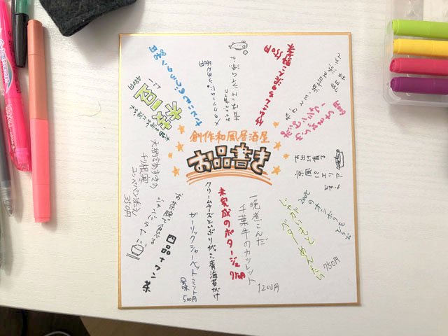 メニューを考える機会なんて普通の人間にはないし、あっても寄せ書きじゃないだろう。難しいお題かと思ったが、これが一番盛り上がった。