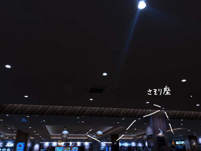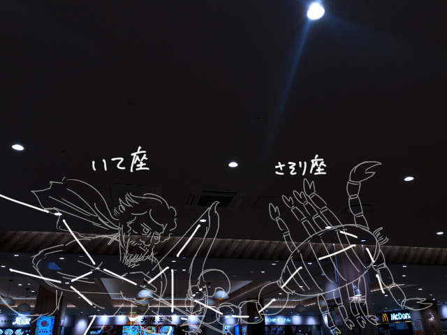 フードコートのいて座は、さそりのちょっと下を向いてしまった。混んでいて疲れちゃったのかもしれないし、さそりが上に動いちゃったのかもしれない。