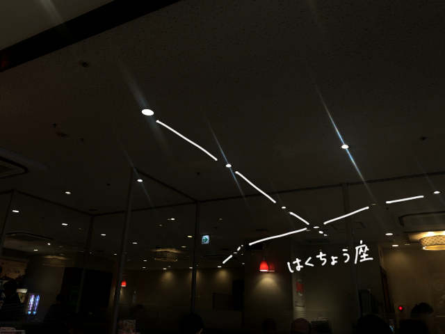 オリオン座を見たおそば屋さんのように、商業施設に入っているお店がいいのかもしれない。天井が真っ平らになっていそうだし、照明の種類にも制限があるんじゃないか。