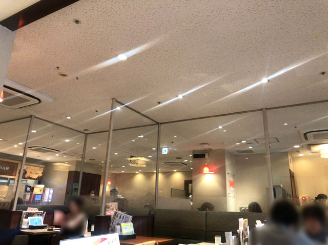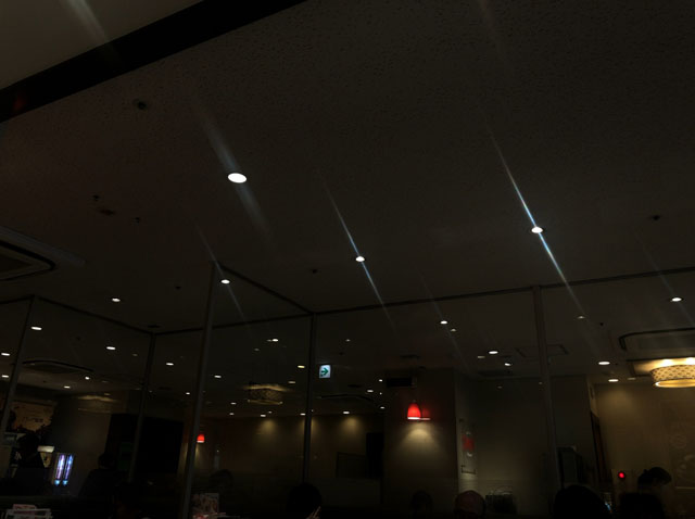 飲食店の中でも、天井が平らで広くて、そこに照明が埋まっているところがいい。