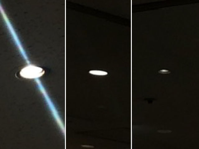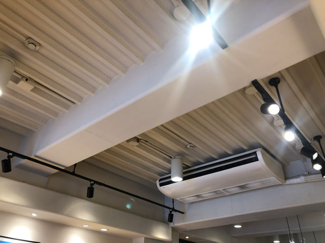 そう思っていくつか見てみるけど難しい。確かに天井が平らで埋まった照明が多いが、半分ほどしか点いていなかったりする。