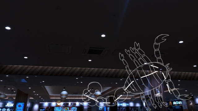 一見夜空なのに、奥に非常口やドリンクバーの明かりがあっておもしろい。