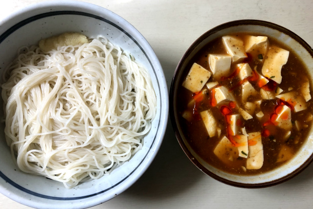 私はここ数年、昼食はおおむねソーメン&麻婆豆腐という生活を続けている。以前はただ茹でただけのソーメンと、レトルトの「素」を使った麻婆豆腐であり、実に質素な食事であった。