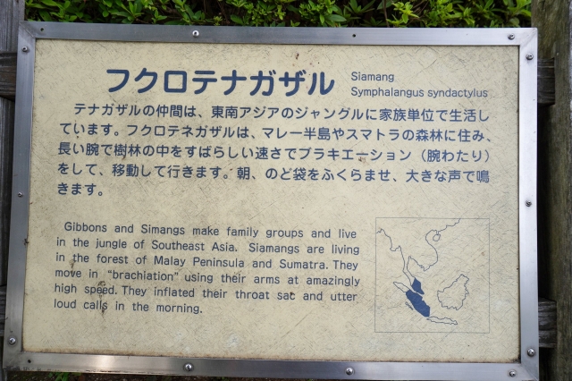 そういえばフクロテナガザルのエリアは柵で囲われていないが、逃げ出したりしないのだろうか。