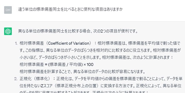 AIにデータを入力してまずは標準偏差を求めてもらう。便利な世の中になったものだ