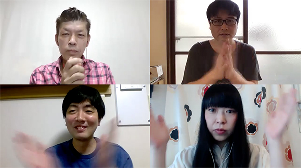 パリ:例えば、スマホやメモ帳に自分の出したい手をあらかじめ書いておいて、ぱっと見せあうとか、やりようはいくらでもあるんですよ。でもやっぱり、道具を使わず身ひとつでなんとかしたい。それを古賀さんに提案したら、「そういえば前にカルカルの横山さんが、WEB飲みだとみんなで同時で手を打つことができないって言ってた」って。