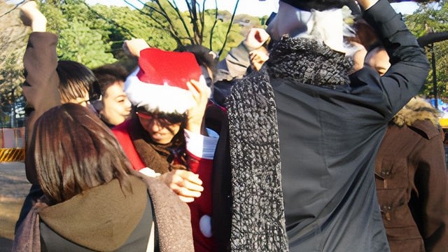 見やすいように、Kさんにはサンタの赤い帽子をかぶっていただいている。