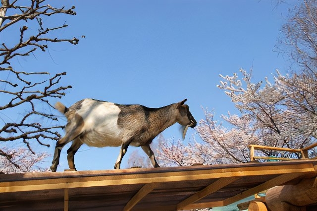 ヤギは高いところに登ってもヤギのままだ。そういえばヤギって野生の動物じゃなくて、家畜だ。