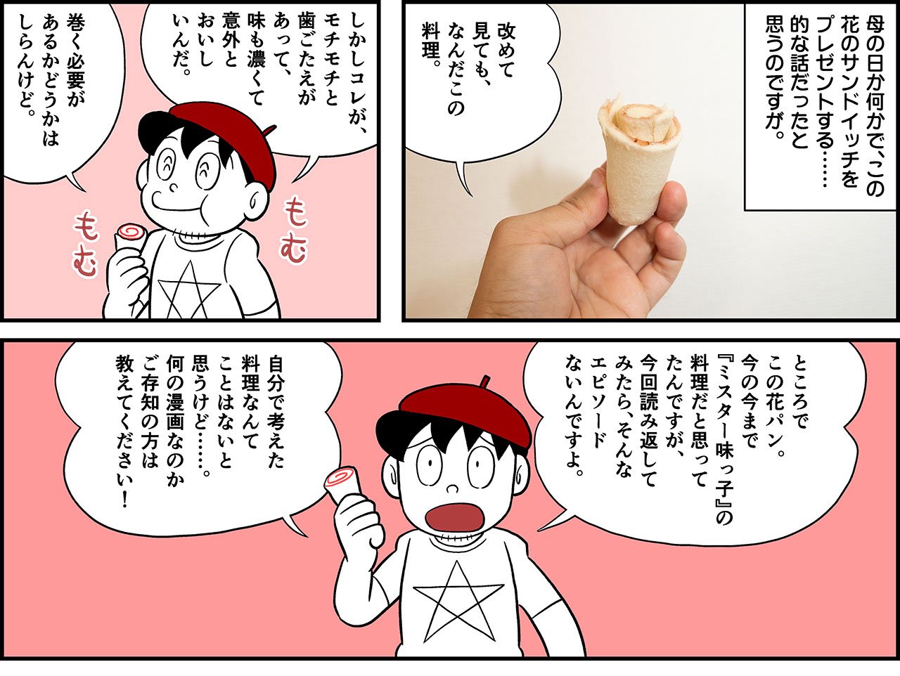 その点、『美味しんぼ』とかになっちゃうと、料理自体はすごくリアルだけど、材料の段階から手に入れるのが難しいものが多くて、マネするのは困難。とんちを駆使して身近な食材をミラクル珍料理に変貌させる、子どもだまし系グルメ漫画が好きだな、ぼかぁ。
