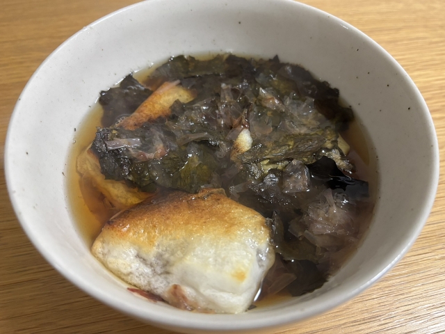 お出汁自体はあっさりしているけれど、舌の奥の方ではばのりのさわやかなほろ苦さを感じます。