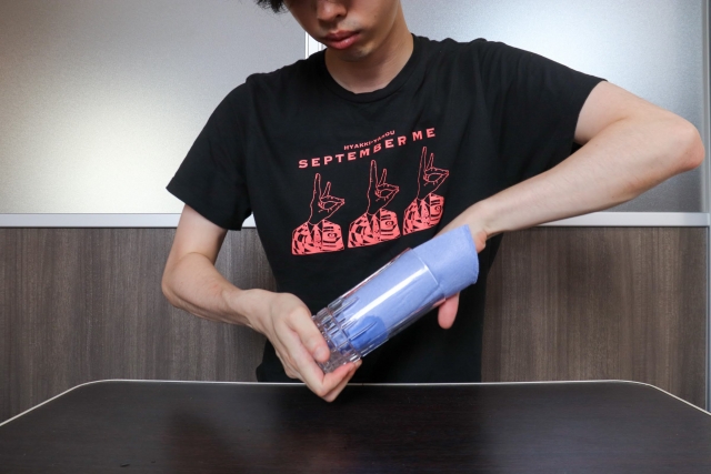 商品バリエーションとして350ml吸水や650ml吸水のものもあったが、材質が違うというより、単純にサイズがでかいバージョンのようだった。今回は飲みかけの水を吸わせるので、手に収まるサイズの200mlでちょうどよさそうだ。