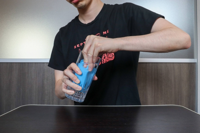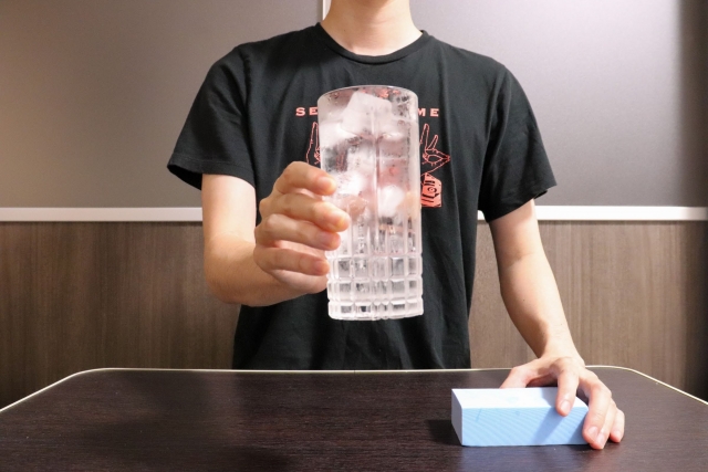 上の例では液体のみが注がれたグラスを用意したが、もちろん氷が入っている場合もあるだろう。グラスの形が異なることだってある。一応おしなべて確認しておこう。