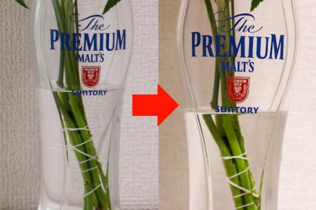 このまましばらくの間置いてみる。先ほどの屋外での実験と違い、今度は水面からの蒸発と花による吸収の合わせ技なので、効率的に飲み物を消費することができるはずだ。理科の授業ですね。